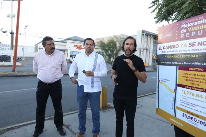 El Presidente Municipal, Cruz Pérez Cuéllar, entregó a la comunidad juarense un nuevo tramo repavimentado de la avenida Hermanos Escobar, la cual ya ha sido rehabilitada desde Plutarco Elías Calles hasta el bulevar Juan Pablo II.