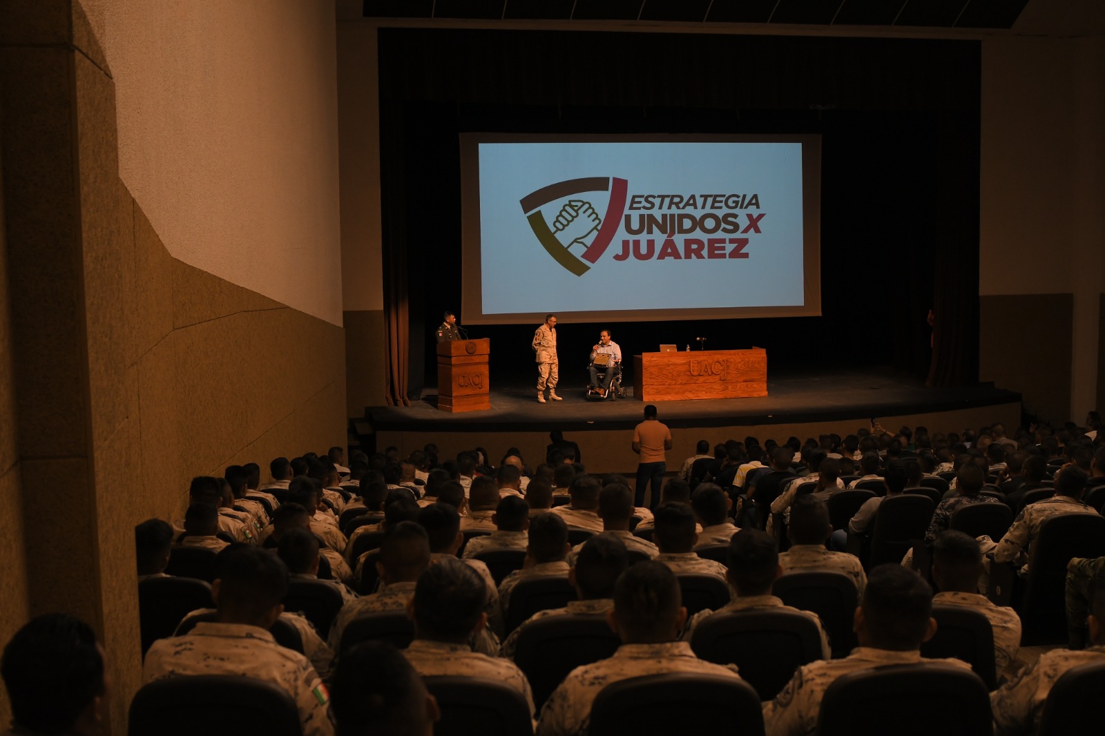 Como parte de las actividades de la Estrategia Unidos por Juárez, el teniente coronel Julián Leyzaola Pérez ofreció una conferencia a la comunidad juarense.