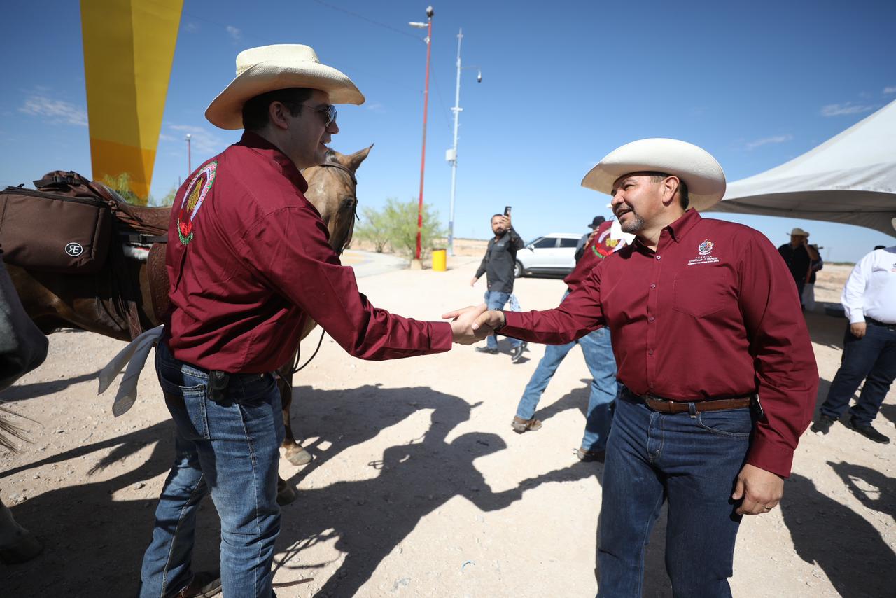 El coordinador de la cabalgata, José Miguel Salcido Romero, entregó un reconocimiento al Presidente Municipal por su respaldo, ya que el edil ofreció el apoyo para iniciar con este importante evento que honra la historia del estado de Chihuahua.