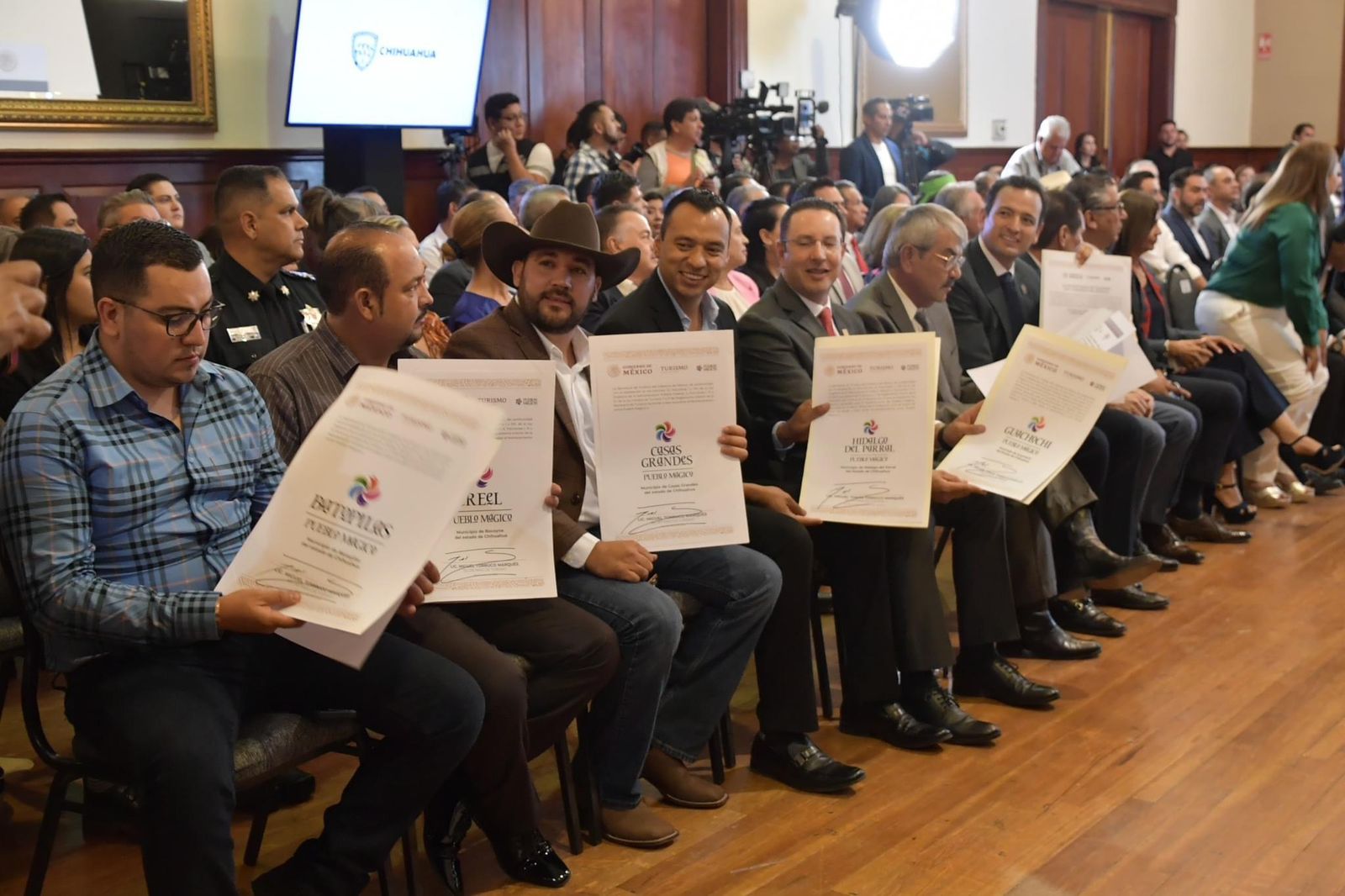 Así como también se realizó la entrega oficial de los nombramientos a Guachochi y Parral. Además, se realizó el nombramiento del primer Barrio Mágico del estado al centro histórico de Chihuahua. Estuvieron presentes todos los alcaldes de estas localidades para recibir las nuevas acreditaciones.