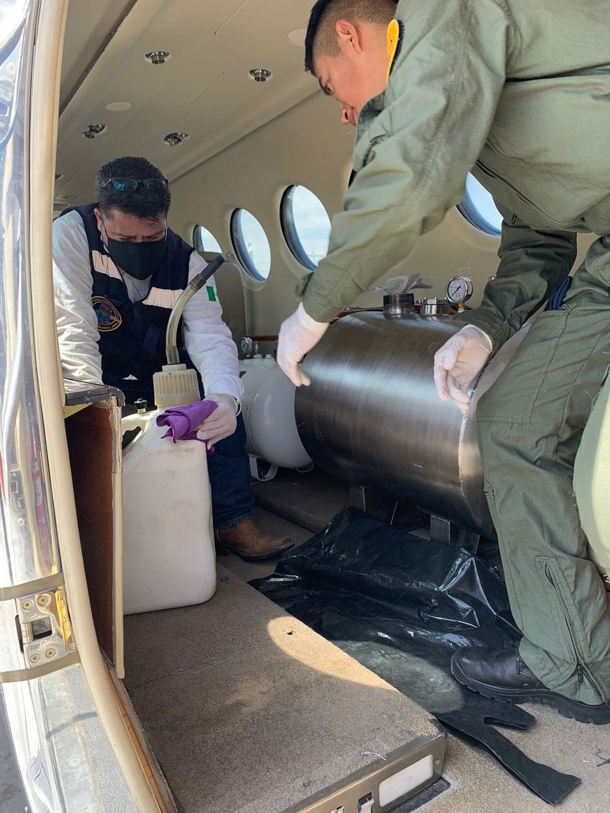 La aeronave de la Sedena es tipo King Air 350i desde donde con espreas esparcen la mezcla de los reactivos en las nubes que concentran mayores niveles de humedad.