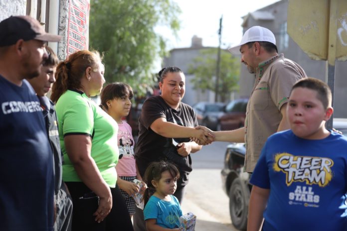 El alcalde encabezó el quinto recorrido organizado por el Sistema del Desarrollo Integral de la Familia de Juárez en coordinación de la Dirección General de Desarrollo Social, quienes entregaron cerca de mil apoyos alimentarios y juguetes a los habitantes del sector.
