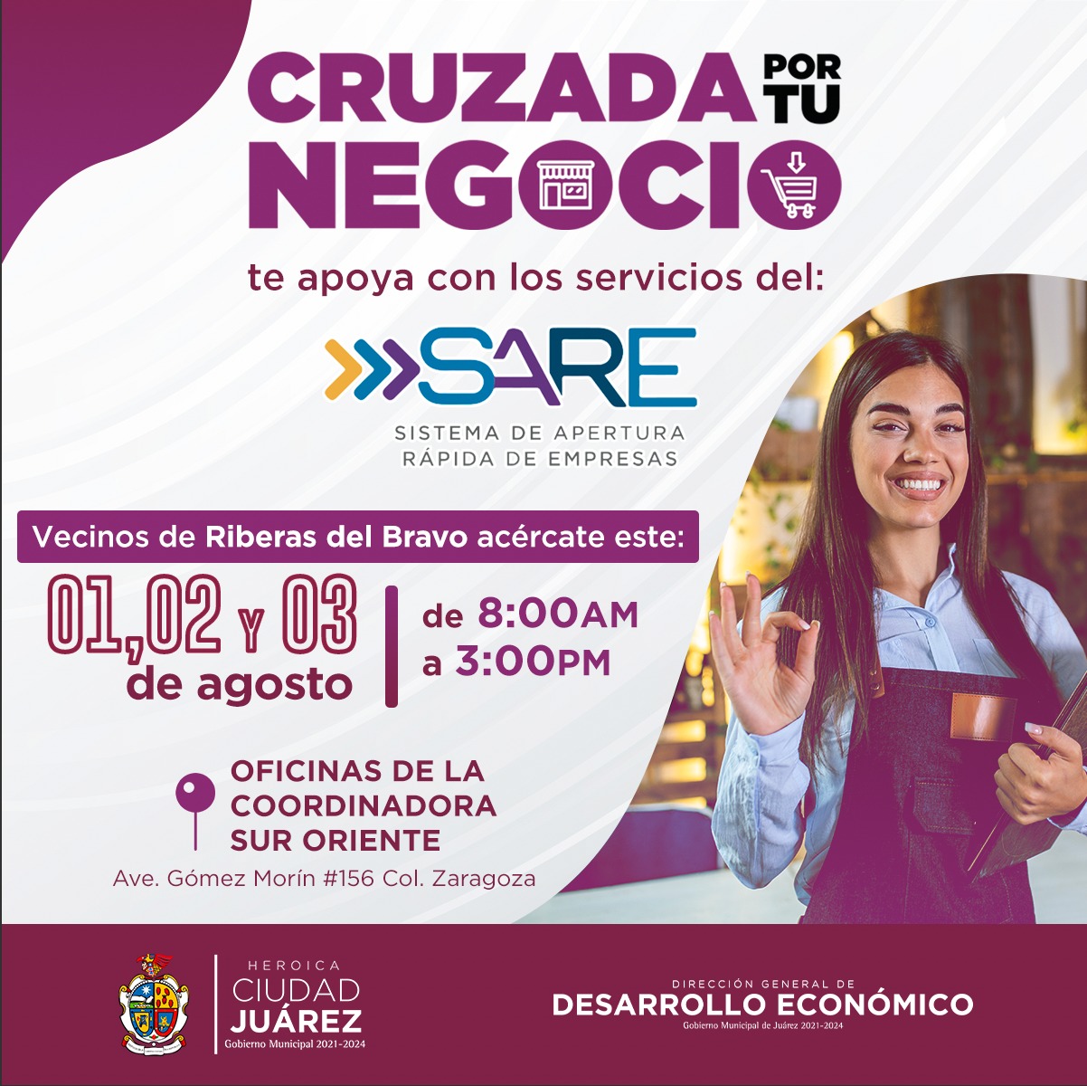 Iván Antonio Pérez Ruiz, titular de la dependencia, informó que del 1 al 3 de agosto, personal del Sistema de Apertura Rápida de Empresas (SARE) ofrece sus asesorías a quienes desean abrir un negocio.