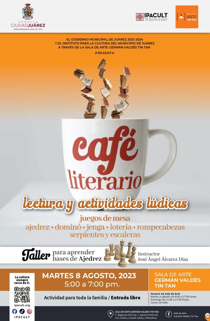 Este martes 8 de agosto a las 5:00 de la tarde, se llevará a cabo una vez más el programa “Café literario” que presenta el Instituto para la Cultura del Municipio de Juárez (IPACULT) a través de la Sala de Arte Germán Valdés “Tin Tan”.