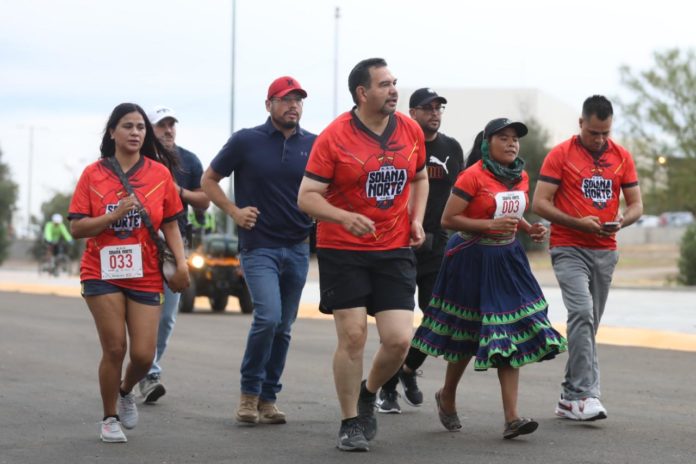 El Presidente Pérez Cuéllar junto con Lorena Ramírez, Juan Escalante y otros corredores de distintas edades, entre niños, niñas, jóvenes, adultos e indígenas, participaron en un recorrido de 3 kilómetros.