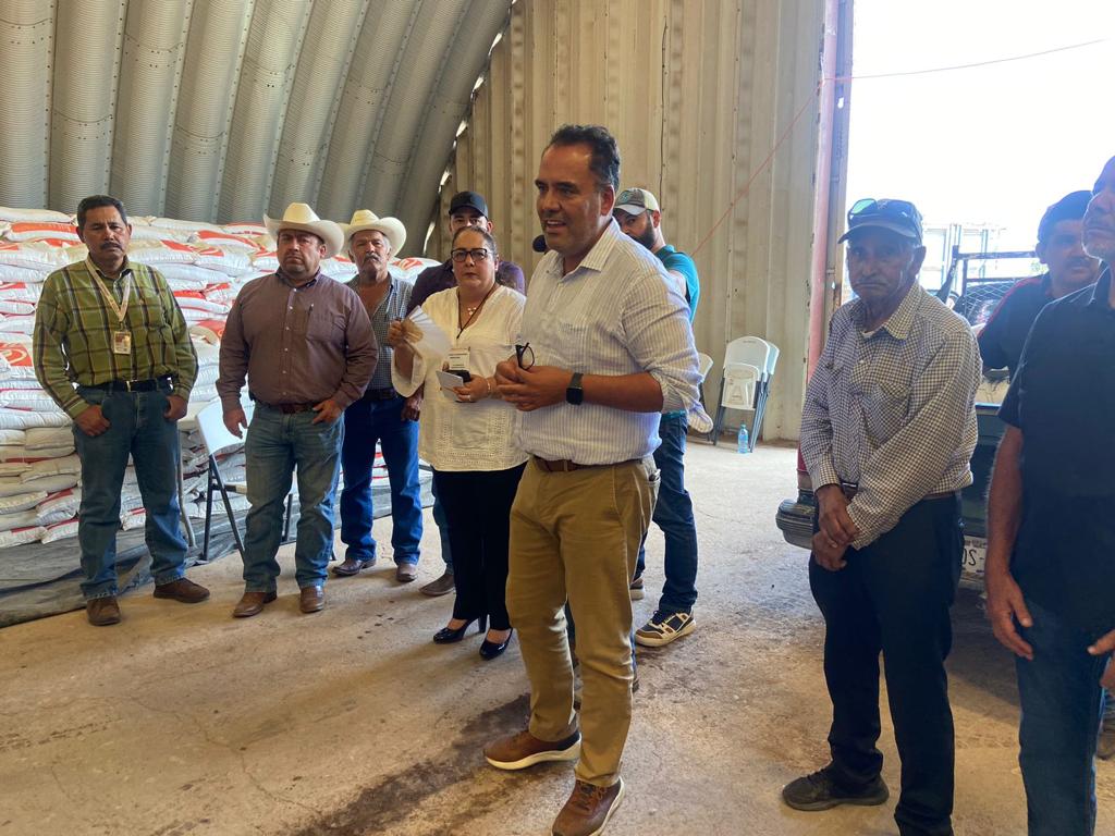 El delegado estatal de los Programas para el Desarrollo, Juan Carlos Loera de la Rosa encabezó la entrega de las primeras toneladas de fertilizante gratuito a productoras y productores beneficiarios de Programa Producción para el Bienestar.