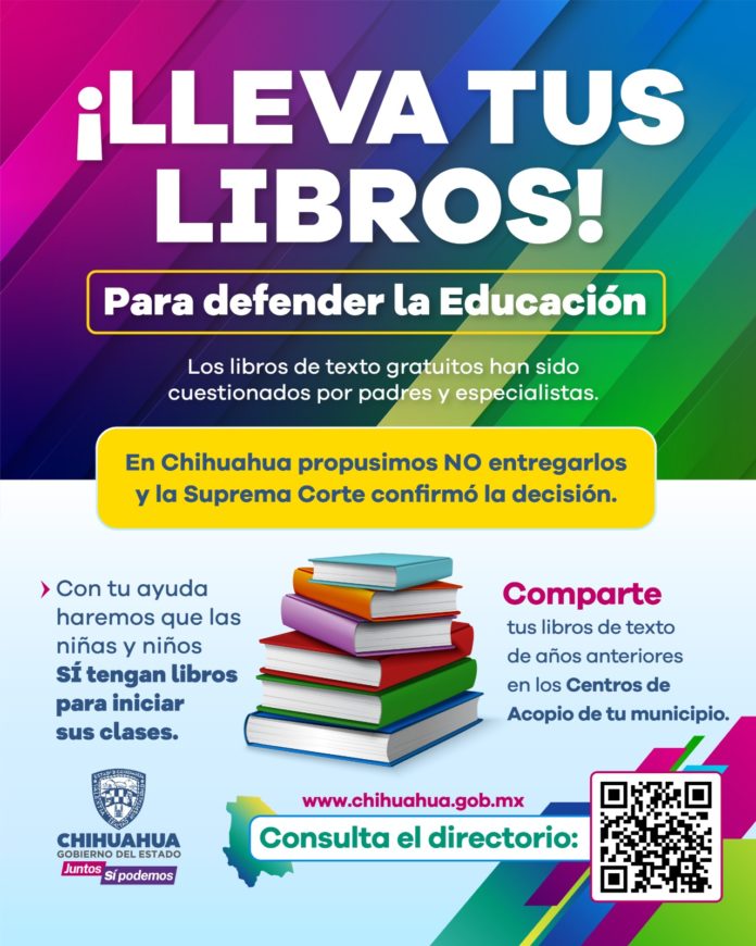 La gobernadora Maru Campos dio a conocer que ya se habilitaron cerca de 200 centros de acopio para la recepción de libros de texto gratuito de los niveles de preescolar, primaria y secundaria, que inicia a partir del próximo lunes 21 de agosto.