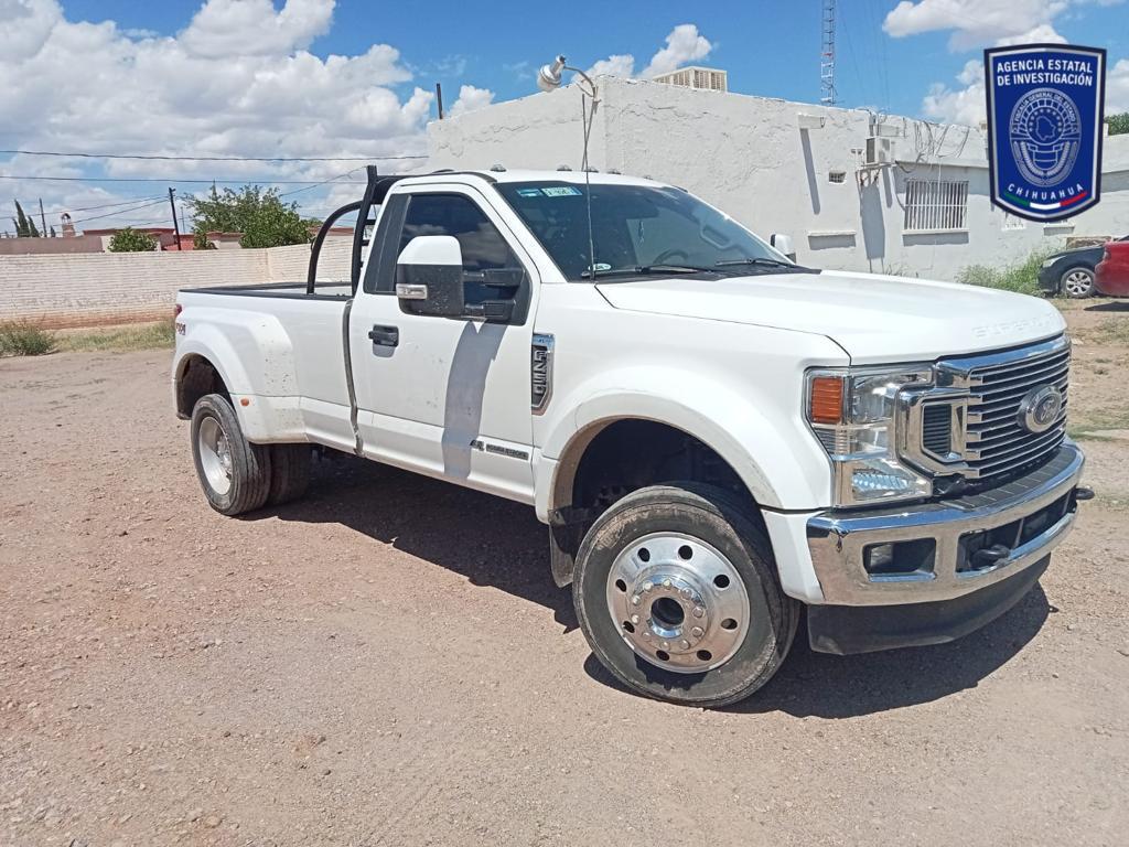 Elementos de la Agencia Estatal de Investigación de la Fiscalía de Distrito Noroeste, detuvieron a Jacobo F. K., y a Cruz Eduardo R. O., por posesión de un pick up de la marca Ford, línea 450, modelo 2022, con reporte de robo en el municipio de Nuevo Casas Grandes.