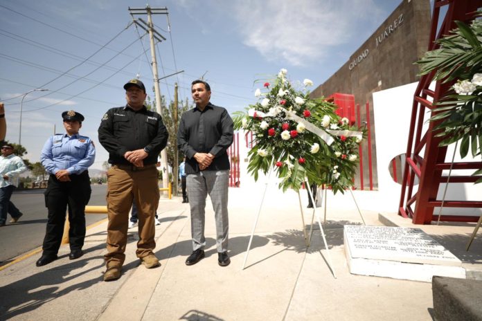 En un emotivo acto para honrar a los bomberos que han perdido su vida en el cumplimiento de su deber, el Presidente Municipal, Cruz Pérez Cuéllar, encabezó la ceremonia en conmemoración del 105 aniversario del Heroico Cuerpo de Bomberos de Ciudad Juárez, que incluyó la colocación de una ofrenda floral y la realización de una guardia de honor en el monumento al Bombero, ubicado en la Estación Central.