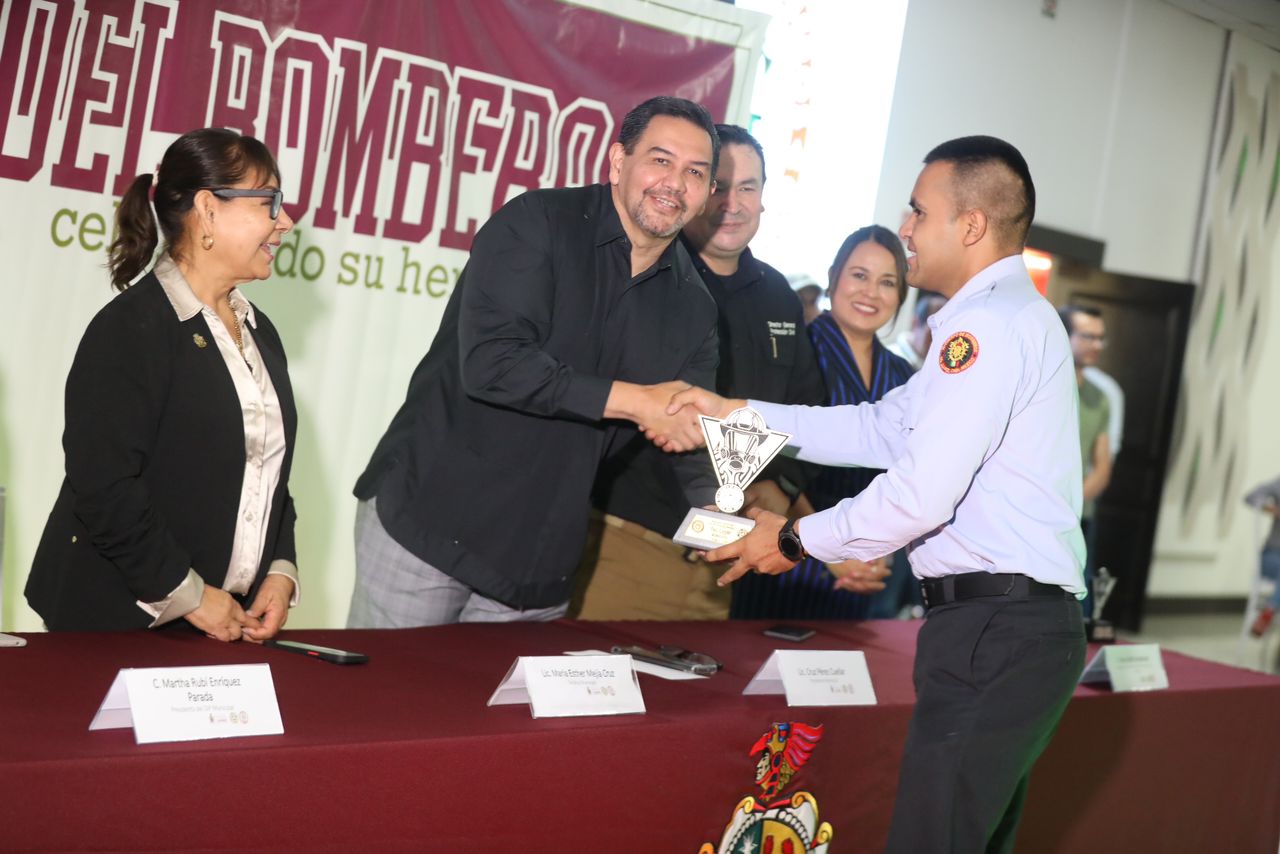 El alcalde acudió al desayuno que fue organizado con motivo del Día del Bombero, en donde extendió su felicitación y reconocimiento a todo el personal por su noble labor en beneficio de la ciudadanía.