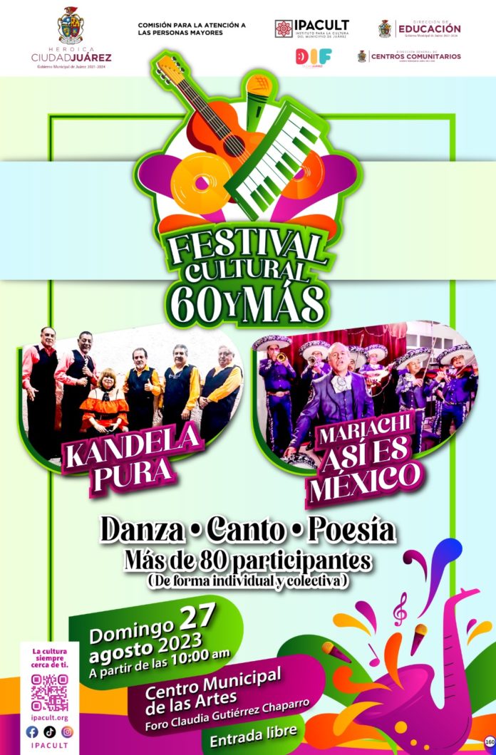 El Festival Cultural 60 y Más es un espectáculo en donde cerca de 90 participantes previamente inscritos bajo convocatoria, expondrán su talento en las áreas de canto, danza, poesía y narración, ya sea de forma individual o de manera colectiva.