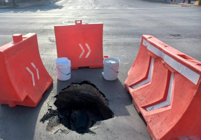 Debido a los trabajos de reparación que estará realizando la Junta Municipal de Agua y Saneamiento por un hundimiento en la avenida Plutarco Elías Calles e Insurgentes, se requerirá del cierre de la vialidad.