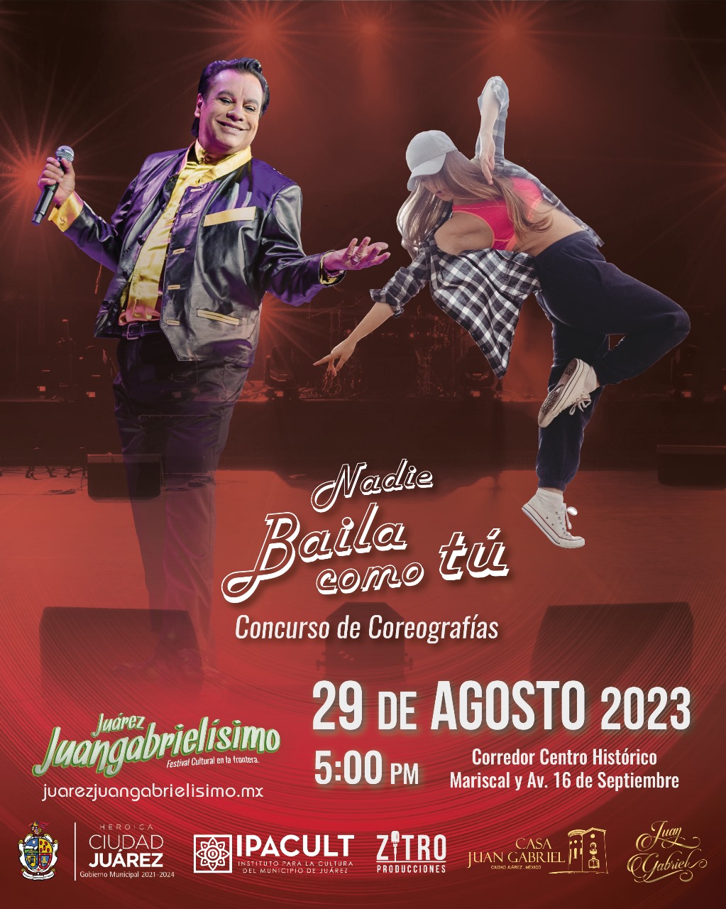 En el marco del festival cultural en la frontera Juangabrielísimo en homenaje al Divo de Juárez Juan Gabriel, mañana martes 29 se tendrá un concurso de baile en el Centro de la ciudad.