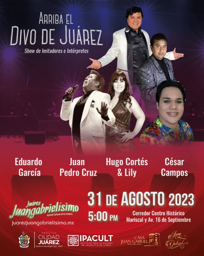 Para mañana 31 de agosto, dentro del festival cultural Juárez “Juangabrielísimo”, se presentará el espectáculo “Arriba el Divo de Juárez”, que trae a imitadores e intérpretes del cantautor mexicano reconocido a nivel internacional.