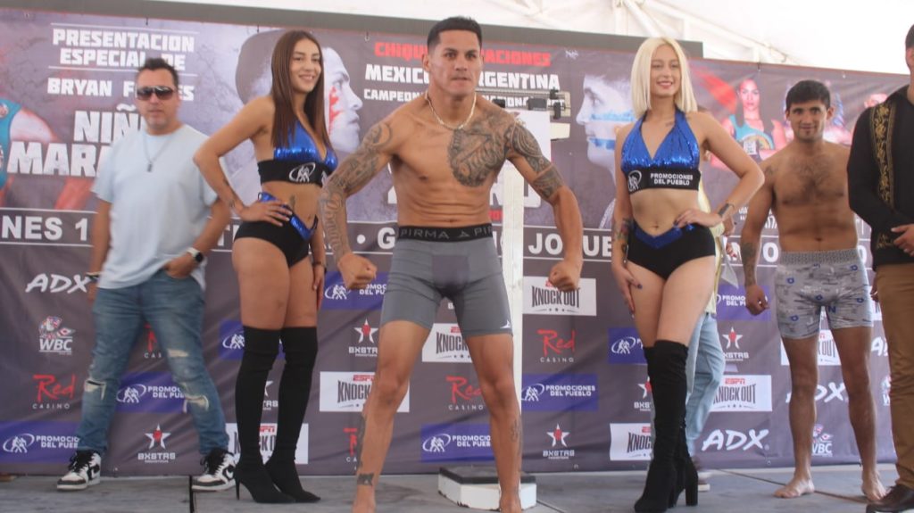 El también local Bryan “El Niño Maravilla” Flores, registró 66.800 kilogramos; pelará en peso súper ligero a 10 rounds contra el de Guasave, Sinaloa, Eliazar “Tronco” Valenzuela, quien registró un peso de 66.800 Kilogramos.