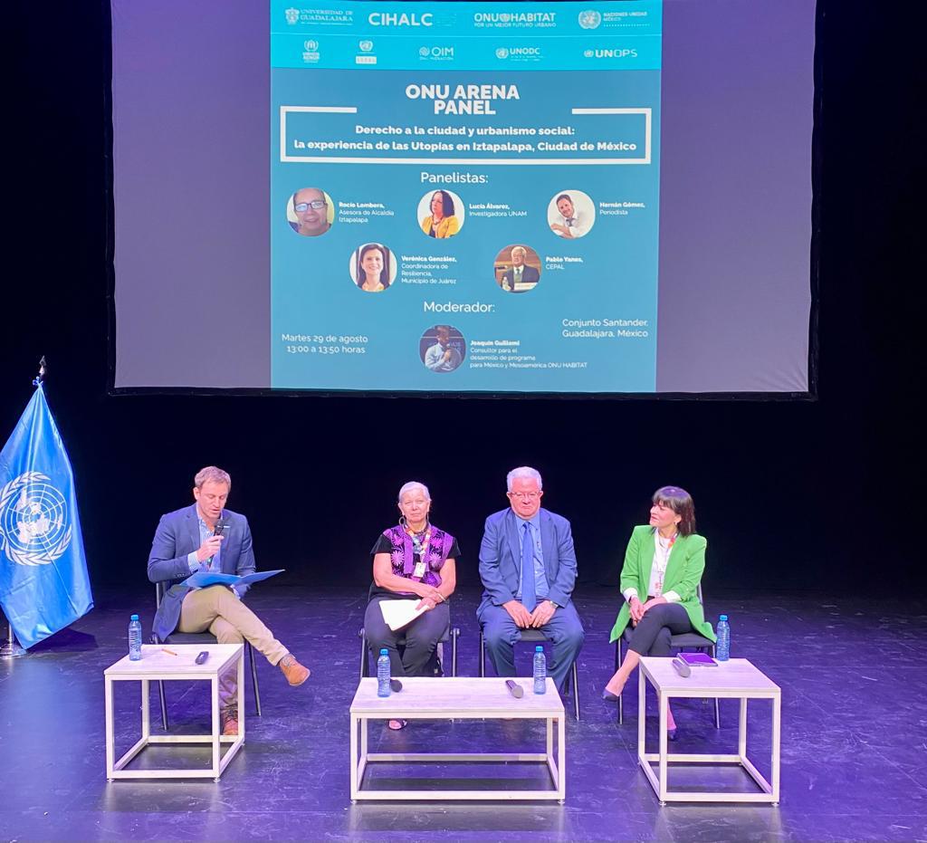 Dentro del panel “Derecho a la ciudad y Urbanismo social: la experiencia de las utopías en Iztapalapa, Ciudad de México”, Verónica González Sepúlveda, coordinadora de Resiliencia, dio a conocer parte del trabajo que se ha logrado en Juárez, como fue la entrega de una cartera de proyectos generados por ONU-Hábitat para esta ciudad.