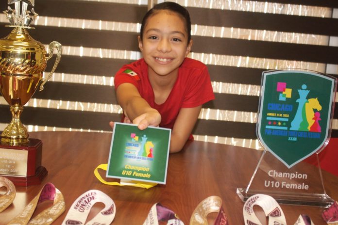 Mía Fernanda ha obtenido seis medallas de oro y cuatro de plata en torneos nacionales e internacionales de ajedrez, el más reciente de ellos, el Campeonato Panamericano en Chicago, donde obtuvo la medalla de oro en la categoría Sub-10.