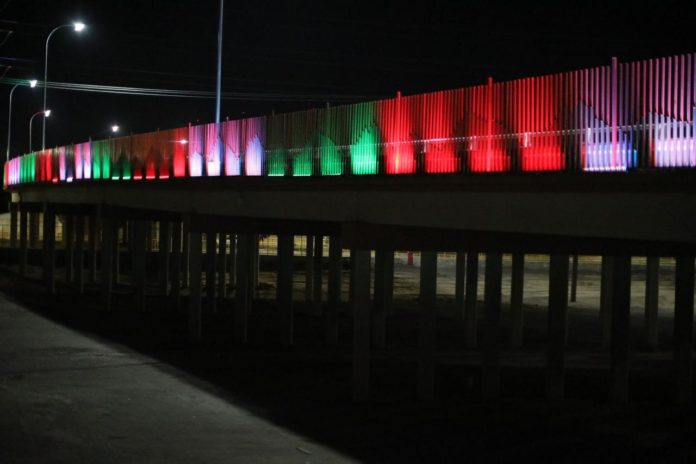 El Presidente Municipal, Cruz Pérez Cuéllar, encabezó el encendido de luces decorativas del Puente Carlos Villarreal, el cual fue iluminado con los colores alusivos a la Bandera de México en conmemoración del Día de la Independencia.