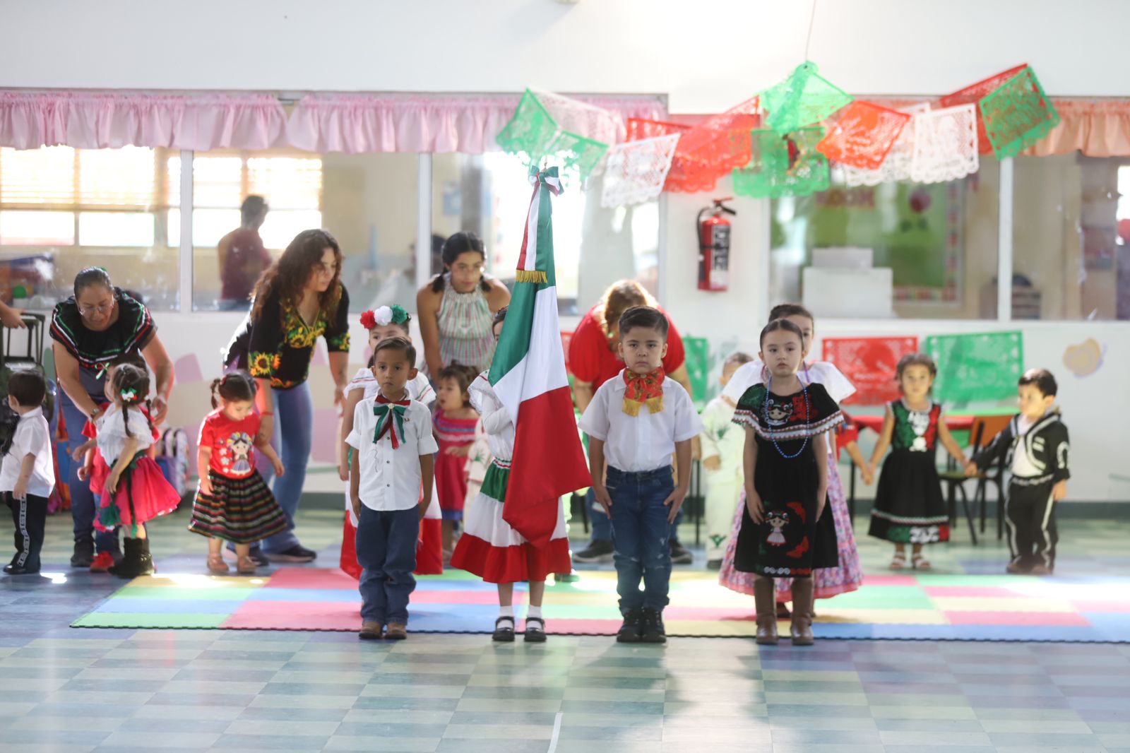 Con motivo de las fiestas patrias, la Estancia Infantil Eva Sámano de López Mateos organizó una kermes, juegos y rindieron honores a la Bandera para conmemorar el aniversario de la Independencia de México.