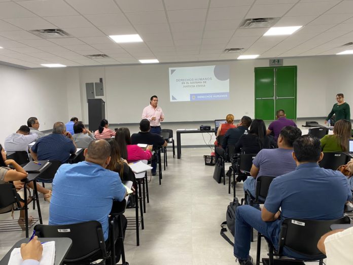 La Dirección de Derechos Humanos del municipio llevó a cabo una capacitación enfocada en los “Derechos Humanos en el Sistema de Justicia Cívica”, dirigida a jueces, fiscales y defensores, la cual se desarrolló en las instalaciones del Distrito Riberas del Bravo de la Secretaría de Seguridad Pública Municipal, informó Santiago González Reyes, titular de la dependencia.