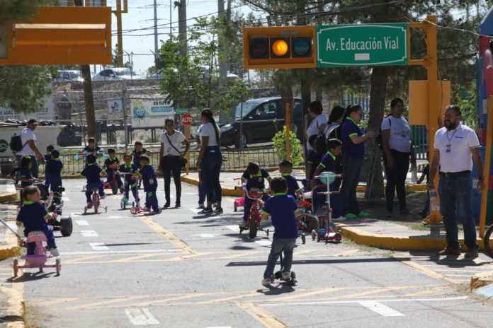 Con la finalidad de aprender sobre temas de seguridad vial de una manera divertida, 129 niños, 31 padres de familia y 9 docentes del Jardín de Niños Enriqueta Jaramillo, que se ubica en las calles Miguel De la Madrid y Alberto Román de la colonia Héroes de la Revolución, visitaron este viernes las instalaciones de la mini ciudad vial.