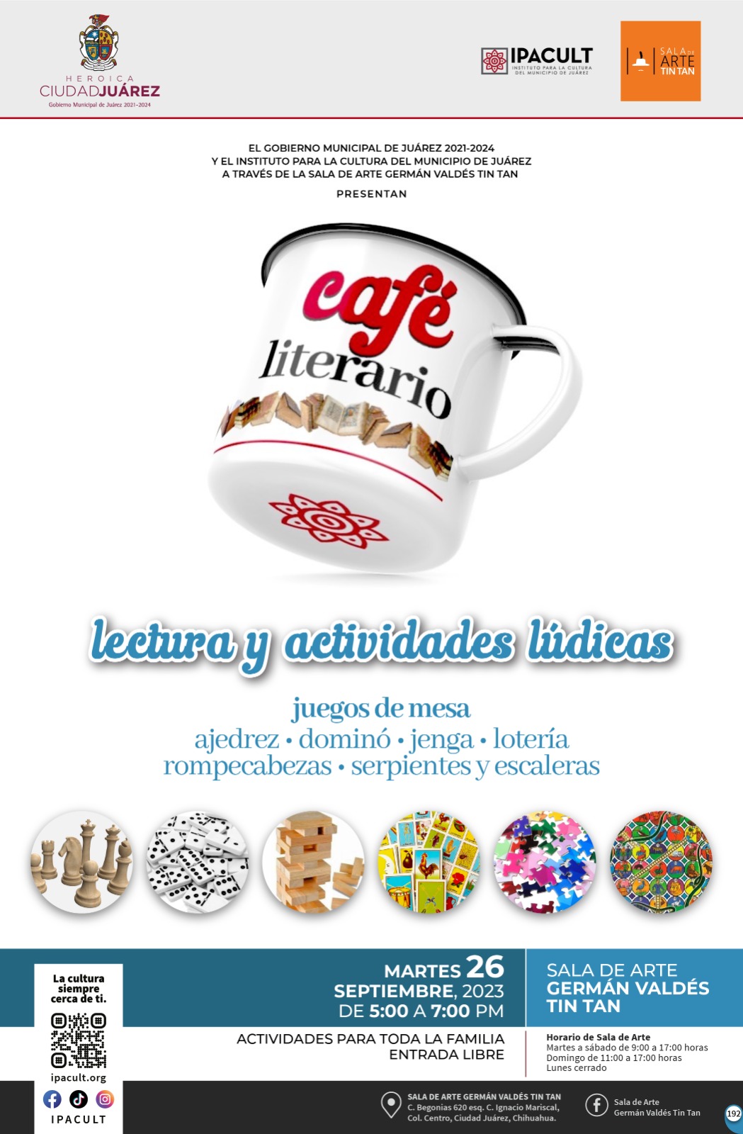 Las tardes de Café literario son para jugar, leer y pasar tiempo de calidad con la familia y los amigos, en un ambiente relajado con juegos de mesa y lecturas libres, expresó Miguel Ángel Mendoza Rangel, titular del IPACULT.