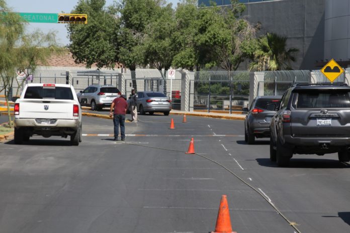 Personal de la Coordinación General de Seguridad Vial continúa pintando las líneas para delimitar los carriles de circulación vehicular en las calles y avenidas de distintos puntos de la ciudad; ahora le tocó el turno de la avenida 16 de Septiembre.