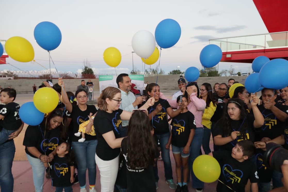 En compañía de niños y adultos, el Presidente Municipal, Cruz Pérez Cuéllar, reconoció el esfuerzo que realizan los padres de hijos con síndrome de Down y organizaciones sociales que luchan por lograr la inclusión e igualdad.