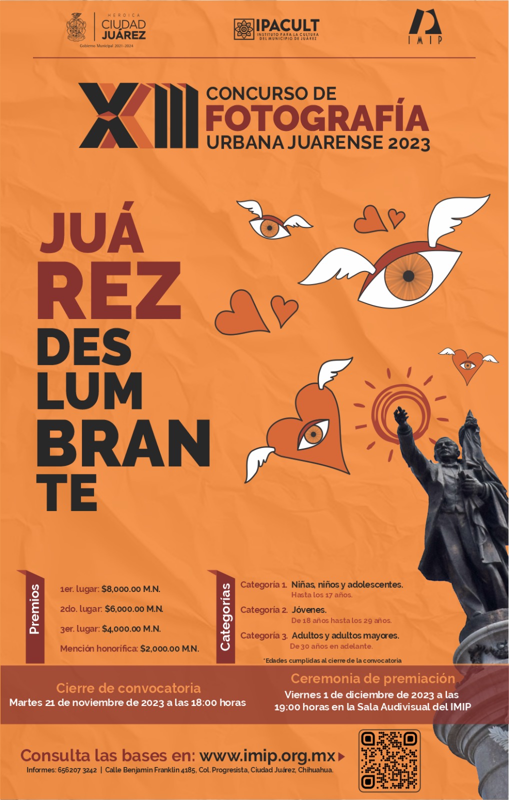 El director general del Instituto Municipal de Investigación y Planeación (IMIP), Roberto Mora Palacios, extendió una invitación a la comunidad fronteriza para que participen en el XXIII Concurso de Fotografía Urbana Juarense 2023 “Juárez Deslumbrante”, el cual es organizado por el Gobierno Municipal.
