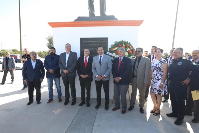 En el marco de la ceremonia efectuada en la Rotonda del Maestro Ilustre, el alcalde reconoció la labor realizada a lo largo de la carrera del maestro Joel Mauricio Rosales, quien se desempeñó como profesor de Educación Física en escuelas públicas y aún continua con la docencia en la Universidad Autónoma de Ciudad Juárez.