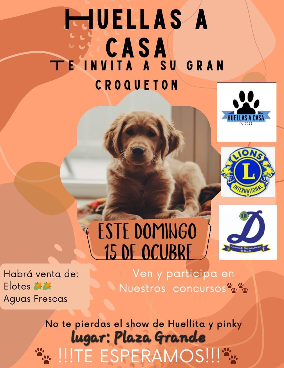 El próximo domingo 15 de octubre, a partir de las 5 de la tarde, el Comité de Damas Leonas de Nuevo Casas Grandes, en apoyo a la Asociación Huellas a Casa realizarán un “Croquetón”, con la finalidad de juntar la mayor cantidad posible de alimento para perros y gatos y poder solventar las necesidades que tiene esta asociación para poder alimentar a los mas de 35 lomitos que tienen en resguardo.