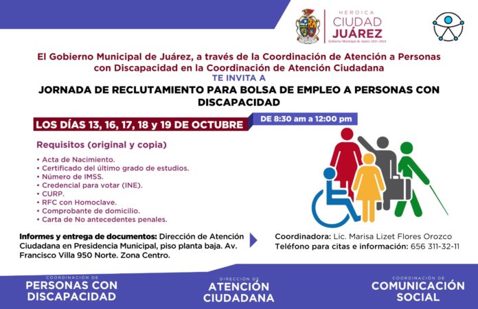 La Dirección de Atención Ciudadana, a través de su coordinación para personas con discapacidad, ha extendido una invitación a las personas con discapacidad a inscribirse en la bolsa de trabajo, en la que diversas empresas han dispuesto de 30 vacantes, informó Marisa Lizeth Flores Orozco, encargada de la coordinación.