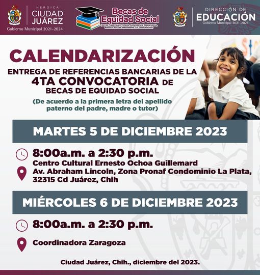 Las referencias bancarias serán entregadas solamente a quienes les fueron aprobadas, de modo que si alguna persona desconoce si se le aprobó, puede verificar en la página https://www.juarez.gob.mx/educacion-becas donde podrán teclear el número de folio o la CURP del alumno, en el recuadro que indica: “Ingresa CURP para saber tu folio”.