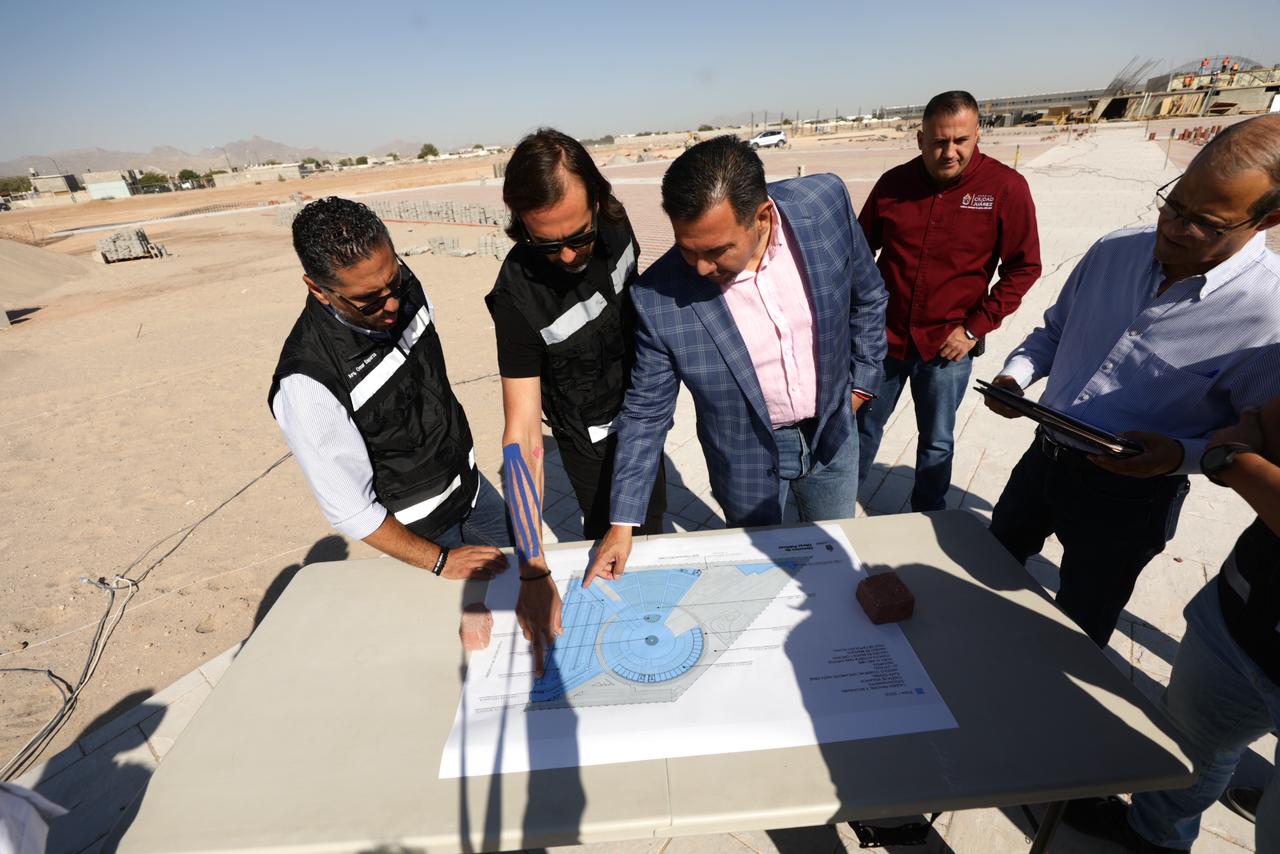 Este día el Presidente Municipal, Cruz Pérez Cuéllar, visitó la zona donde se construye el Parque Urbano Suroriente, a fin de constatar el avance de los trabajos de este espacio, el cual será de gran beneficio para la comunidad que habita al suroriente de Ciudad Juárez.