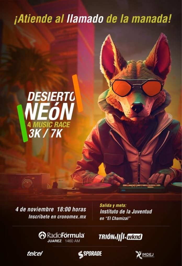Continúan abiertas las inscripciones para participar en la Carrera Pedestre Desierto Neón A Music Race, competitiva de 3 kilómetros y recreativa de 7 kilómetros, organizada por Radio Fórmula para promover el deporte en nuestra ciudad.