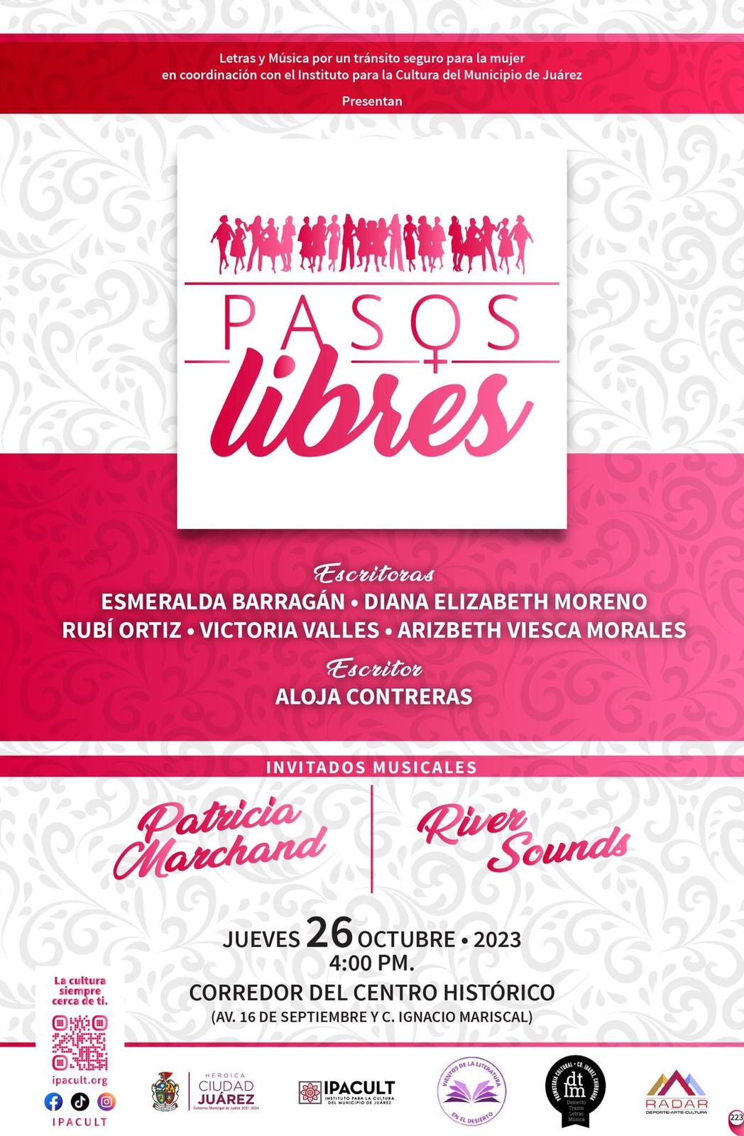 Una vez más la comunidad podrá disfrutar de “Pasos Libres”, espectáculo de música y poesía que se desarrollará en un ambiente seguro para las mujeres y en general para todas las personas que transitan por el corredor de la Zona Centro.