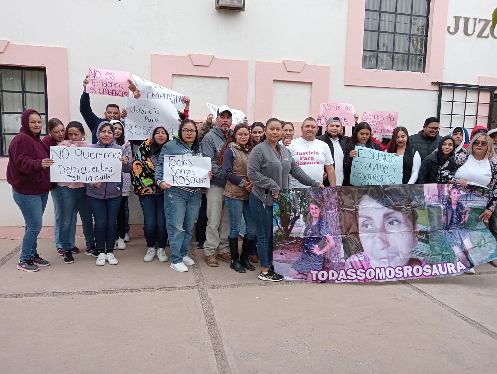 En la audiencia estuvieron presentes la mamá y una hija de la víctima, así como un grupo de 30 vecinos y amistades de la familia, mientras que afuera, estaba otro grupo encabezados por Lety Lara, quienes gritaban arengas de querer un “juicio justo” y “todos somos Rosaura”.