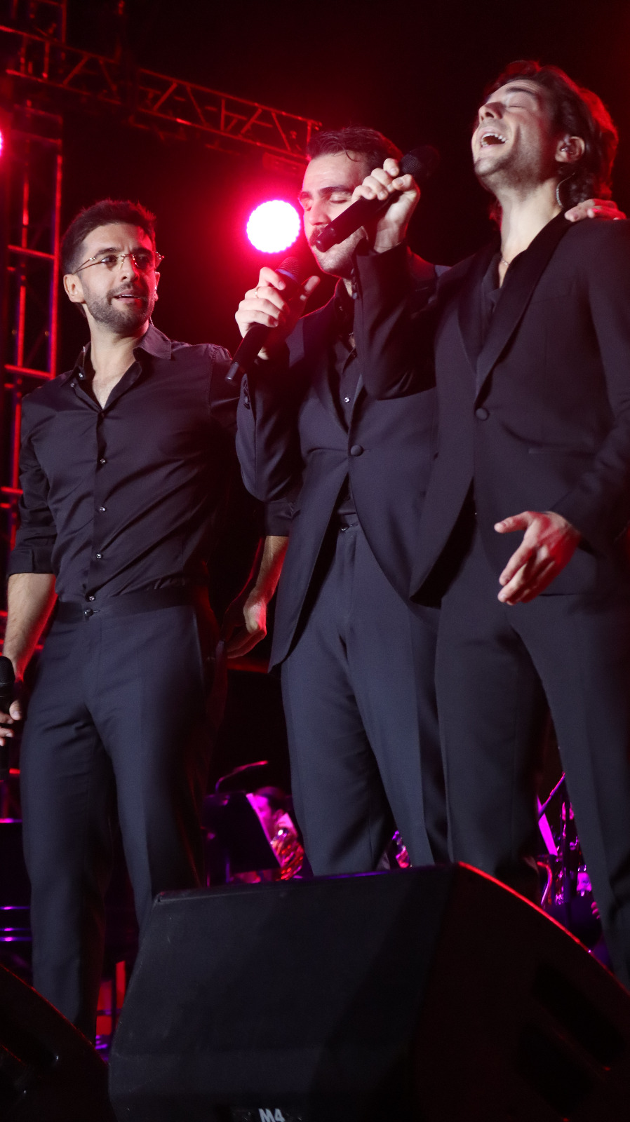 Dirigidos por el maestro César Velázquez Hernández, abrieron con los acordes de “Ecstasy of gold” Gianluca Ginoble, lo que dio paso a la aparición sobre el escenario de Ignazio Boschetto y Piero Barone, integrantes de la reconocida agrupación.