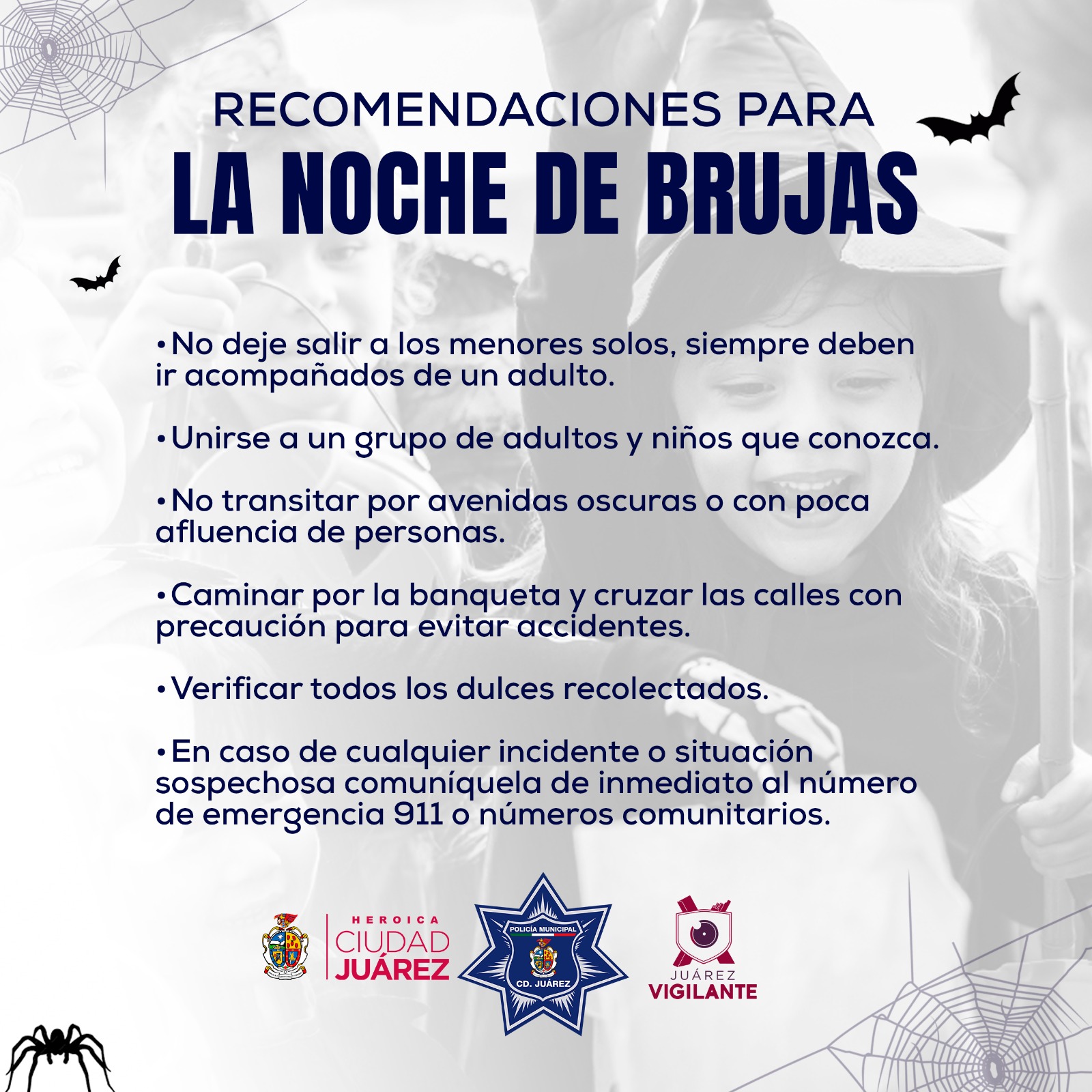 La Secretaría de Seguridad Pública Municipal da a conocer que desplegará un operativo especial para brindar seguridad a las familias juarenses durante la celebración de la “noche de brujas”.