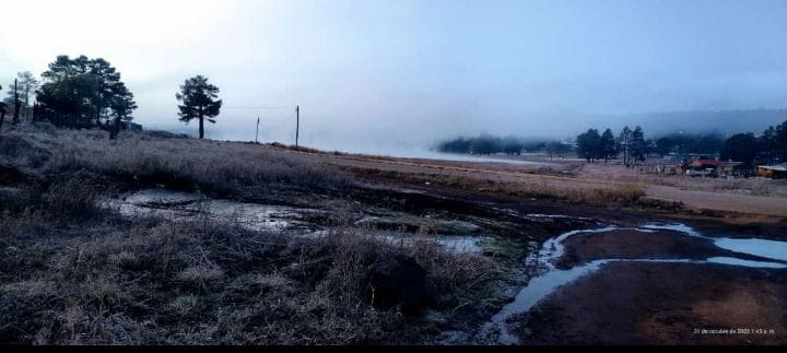Comunidades ubicadas en la Sierra Tarahumara registraron temperaturas bajo cero, debido a la presencia sobre territorio estatal de la masa de aire ártico y que impulsa el paso del frente frío No. 8.