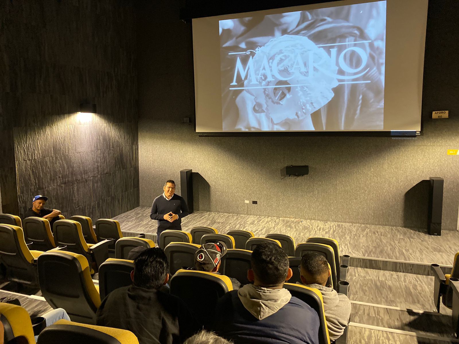 En conmemoración del Día de Muertos, la Dirección de Derechos Humanos del municipio organizó una proyección especial de la película “Macario”, a la que asistieron ciudadanos y personas en situación de movilidad que se encuentran en el albergue Enrique “Kiki” Romero, informó Santiago González Reyes, titular de la dependencia.