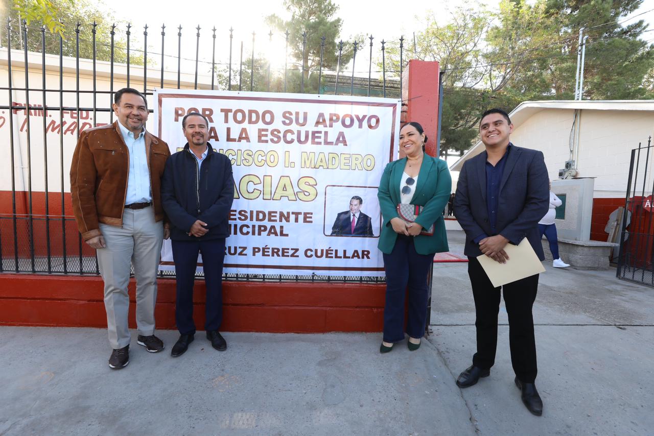 Este día el Presidente Municipal, Cruz Pérez Cuellar, hizo entrega de las obras de rehabilitación de la Escuela Primaria “Francisco I. Madero”, situada en la colonia Luis Donaldo Colosio.