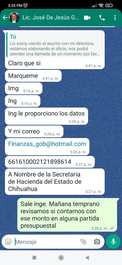 De la misma forma, a través de un número de teléfono con clave lada de la ciudad de México, se han contactado a algunos directivos de diversos planteles educativos para solicitarles transferencia de recursos.