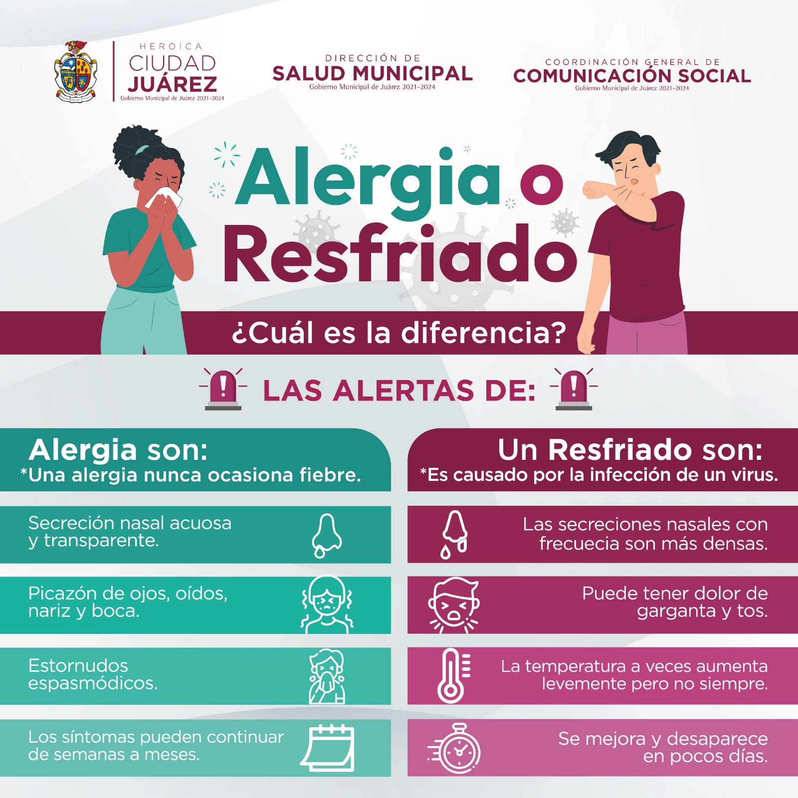Sin embargo ambos padecimientos pueden prevenirse si las familias juarenses evitan exponerse a cambios bruscos de temperatura, especialmente por la mañana y las noches, indicó.