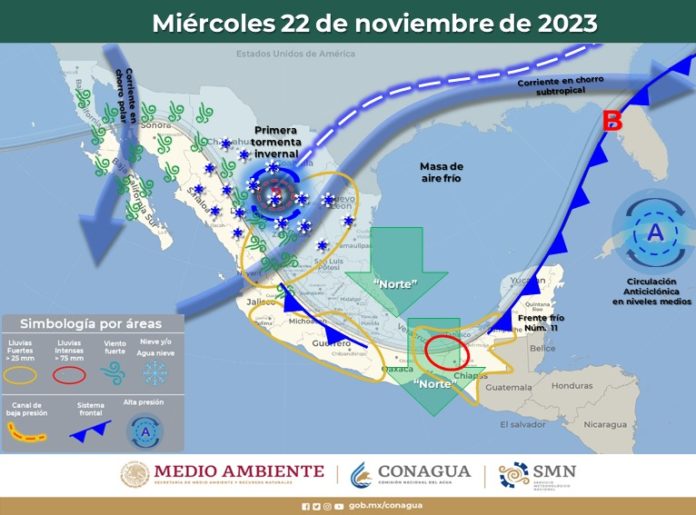 Este fenómeno será generado por una vaguada polar que está extendida sobre el noroeste del país, que desarrollará un vórtice de núcleo frío en los límites de los estados de Chihuahua, Durango y Sinaloa, y hará interacción con las corrientes en chorro polar y subtropical.