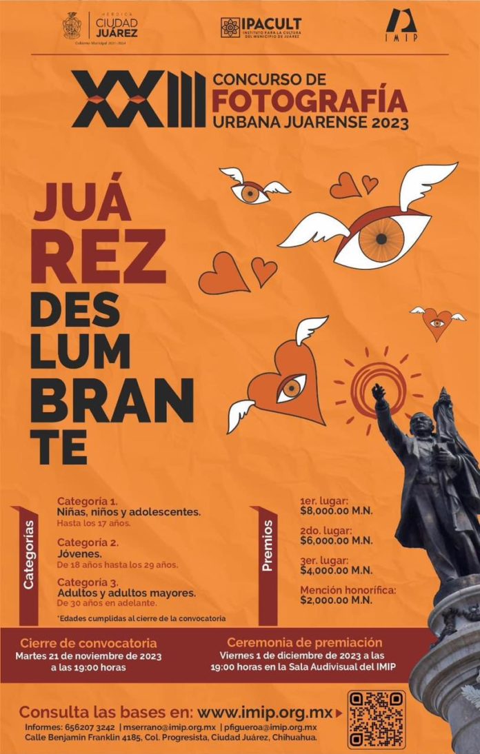 La convocatoria para el XXIII Concurso de Fotografía Urbana Juarense 2023 “Juárez Deslumbrante” concluyó ayer martes 21 de noviembre, por lo cual el Instituto Municipal de Investigación y Planeación extendió un agradecimiento para los 144 juarenses que se registraron en el concurso.