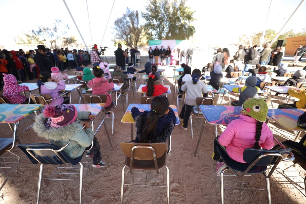 Acompañado de funcionarios municipales, padres de familia y maestros, el Presidente Municipal, Cruz Pérez Cuéllar, entregó este día domos en las escuelas Un Siglo de Servicio y Luis Ramsés Meneses Hoyos, situadas en el fraccionamiento Riberas del Bravo, etapa 2.