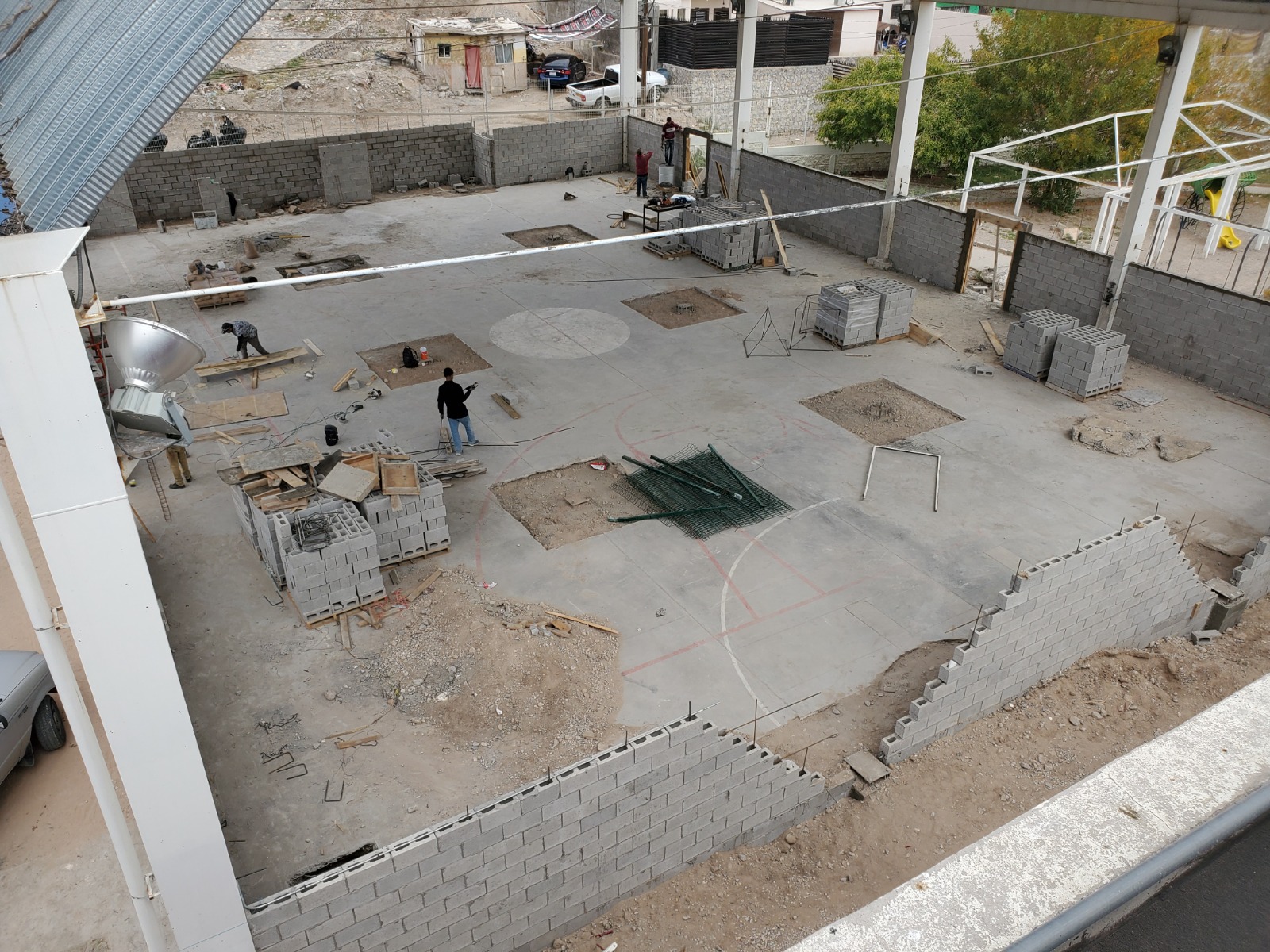 La Dirección de Edificación de la Dirección General de Obras Públicas, continúa trabajando en la construcción del albergue para niños migrantes en lo que eran las instalaciones del Centro Comunitario Felipe Ángeles, proyecto que ya registra un avance del 30 por ciento.