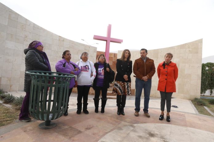 El Presidente Municipal, Cruz Pérez Cuéllar, asistió a las instalaciones del Memorial Campo Algodonero, donde colocó una ofrenda floral para recordar a las jóvenes que en el año 2001 fueron víctimas de feminicidio.