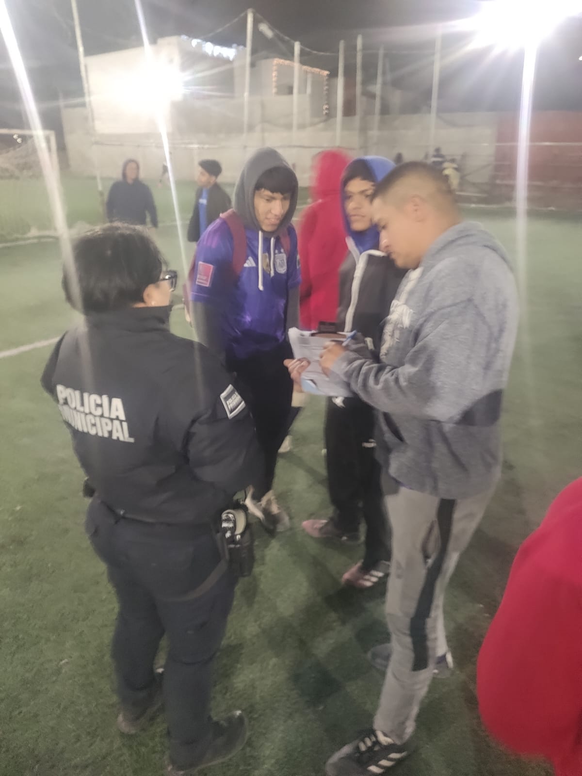 Los agentes se dieron cita en la cancha Benavides, ubicada en el cruce de las calles Ramón Rayón y Arquitecto José Villagrán García, en la colonia Horizontes del Sur, donde participaron en un partida de voleibol, además de darles consejos preventivos.